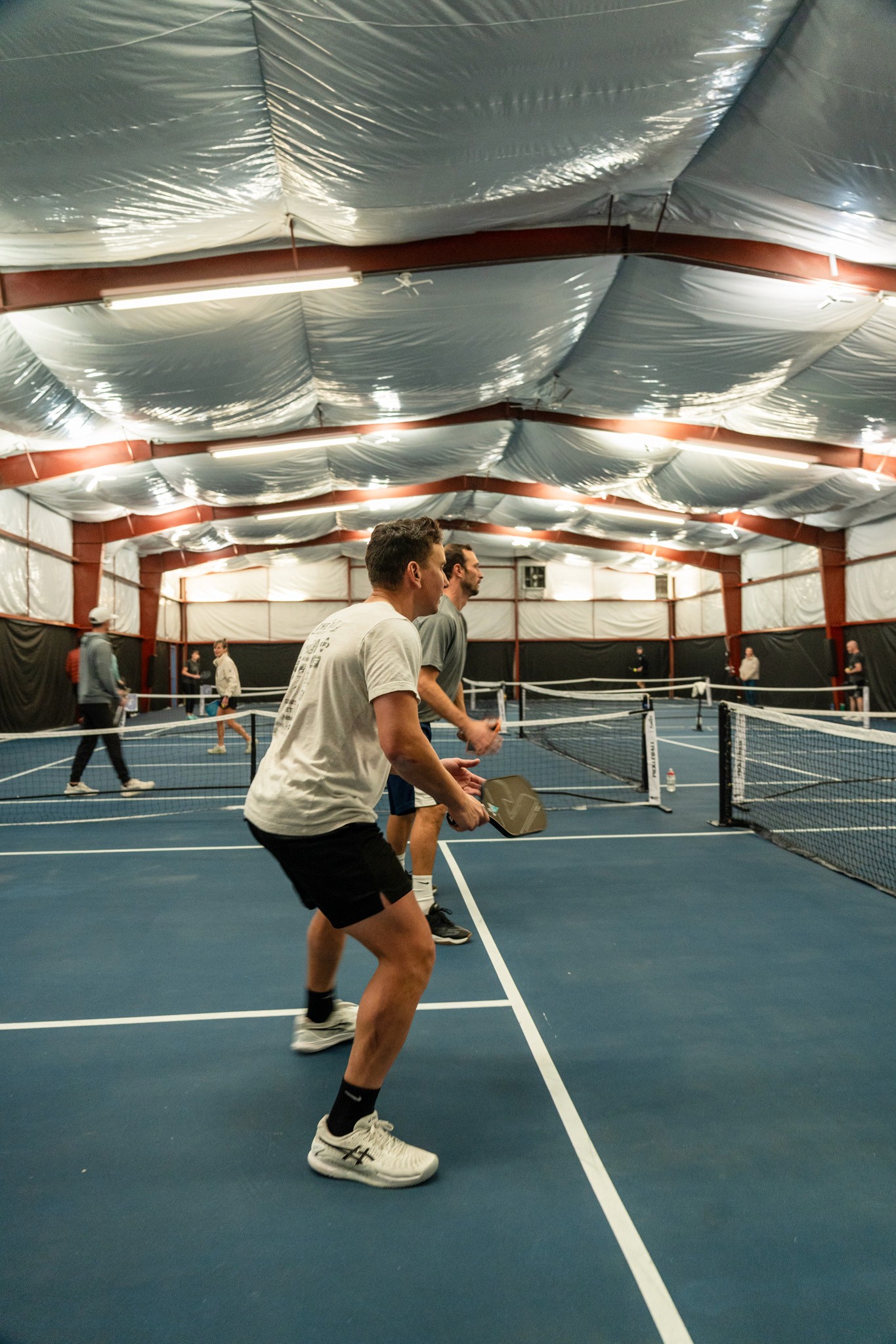 Friendly, welcoming, and competitive enough to be fun. Open play is designed for everyone to mix it up and rotate partners — come ready to meet people and keep it light. I met my best friend at Open Play.